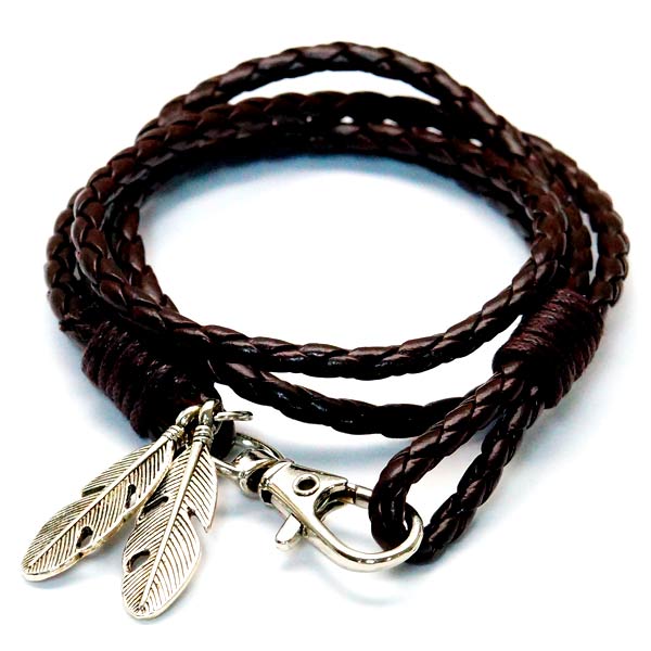 アーガイル柄 菱形格子模様 2連 イーグルフェザー 鷲の羽 チャーム メンズ レザー ブレスレット 【赤/黒/薄茶/濃い茶】