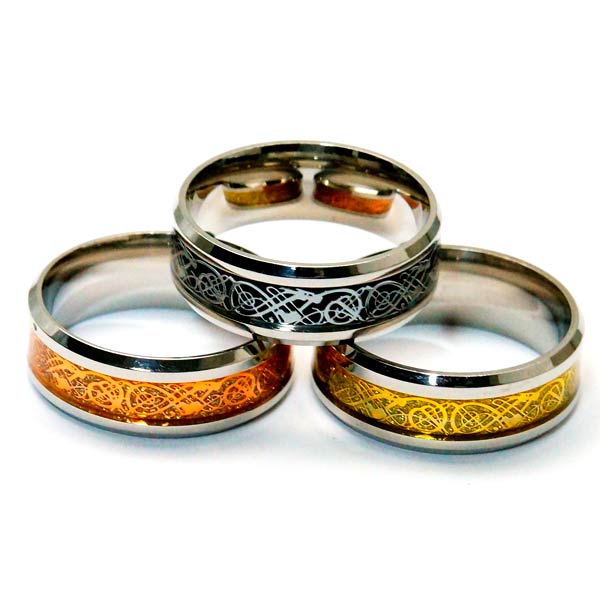 ドラゴン 龍 メッシュ風 ラメ グラスコーティング メンズ レディース ステンレス リング 【オレンジゴールド/イエローゴールド/ブラック】