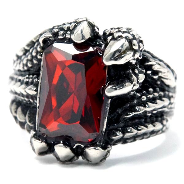 ドラゴン 龍 ネイル 爪 レッドジルコニア メンズ ステンレス リング 指輪