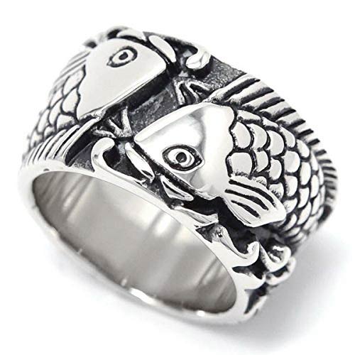 和柄 和風 鯉 カープ 波模様 メンズ ステンレスリング 幅広 指輪 リング