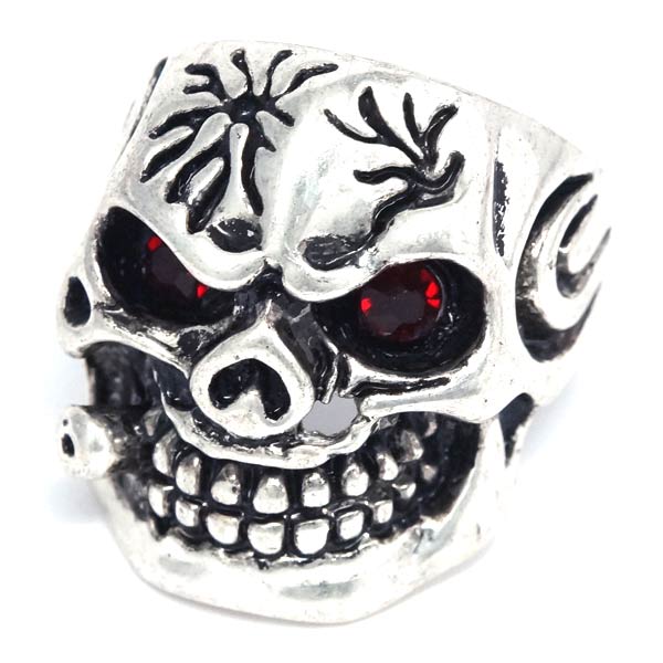スカル 髑髏 葉巻き たばこ マフィア ギャング ジルコニア メンズ リング 【レッド/グリーン】