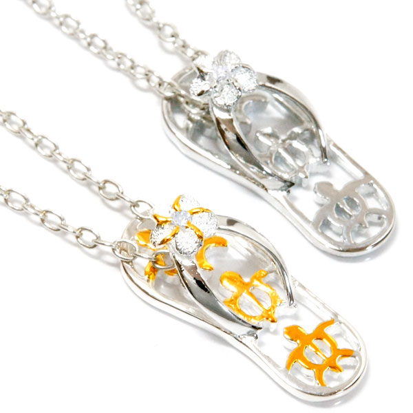 ハワイアンジュエリー ネックレス ビーチサンダル プルメリア ホヌ ジルコニア シルバー925 【シルバー/イエローゴールド】