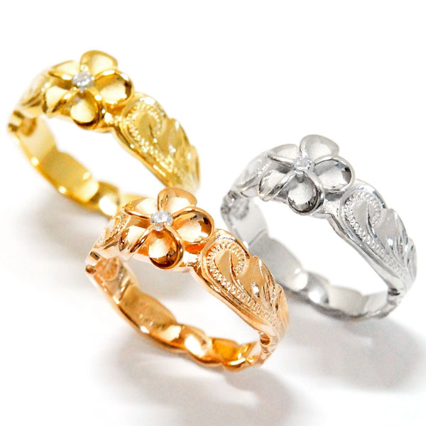 ハワイアンジュエリー リング プルメリア 花 波 ジルコニア シルバー925 【ピンクゴールド/イエローゴールド/シルバー】