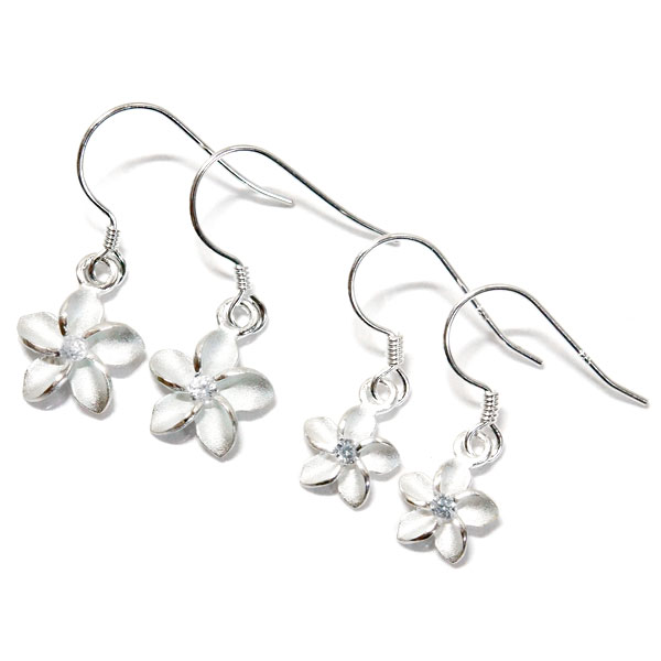 ハワイアンジュエリー フックピアス プルメリア 花 シャープ クリアジルコニア シルバー925 【10mm幅/8mm幅】