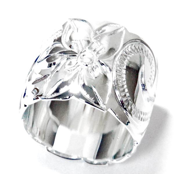 ハワイアンジュエリー リング プルメリア 花 スクロール 波 カットアウト ワイド幅 レディース シルバー925