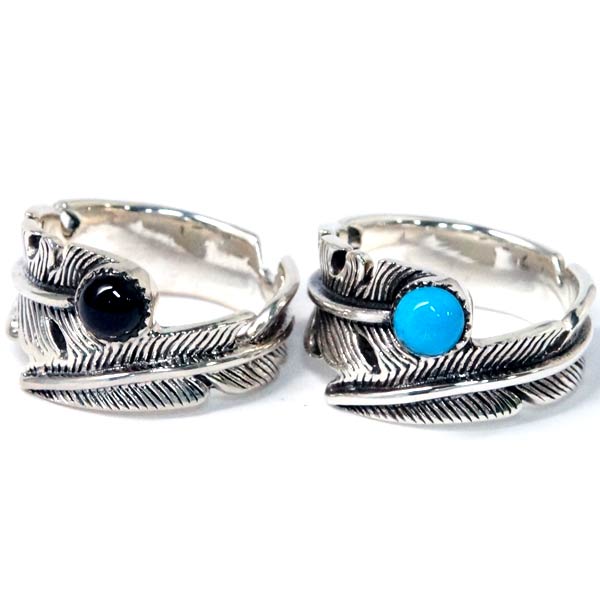 インディアンジュエリー リング フェザー 羽 ラウンド 天然石 メンズ シルバー925 【ターコイズ/オニキス】