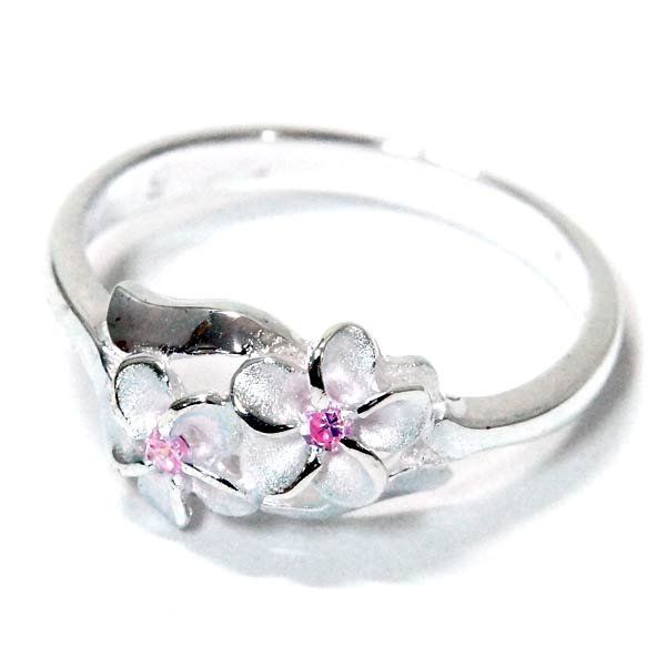 ハワイアンジュエリー リング プルメリア 花 ツイン フラワー ピンクジルコニア レディース シルバー925