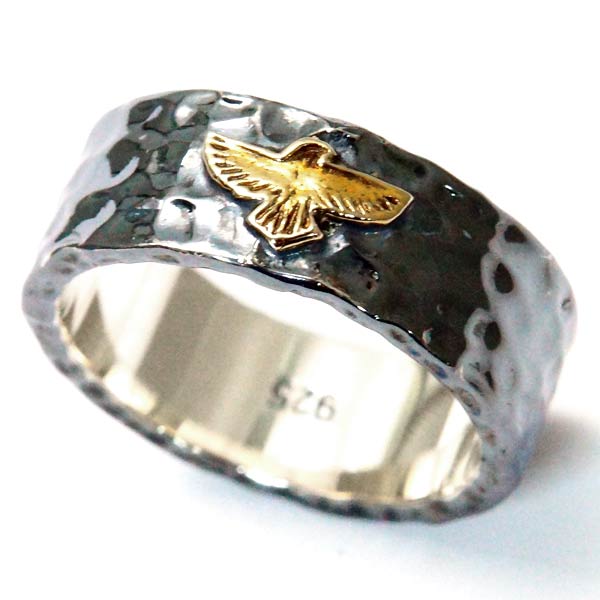 インディアンジュエリー リング イーグル 鷲 ゴールド ハンマー仕上げ メンズ シルバー925