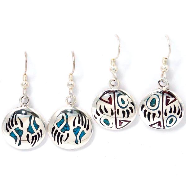 インディアンジュエリー フックピアス 天然石 ターコイズ 珊瑚 オニキス ベアパウ シルバー925 【水色&赤&黒/水色&黒】
