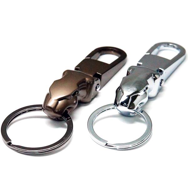 豹 パンサー レオパード 鍵 フック シンプル キーホルダー キーリング【シルバー/ブラウンブラック】