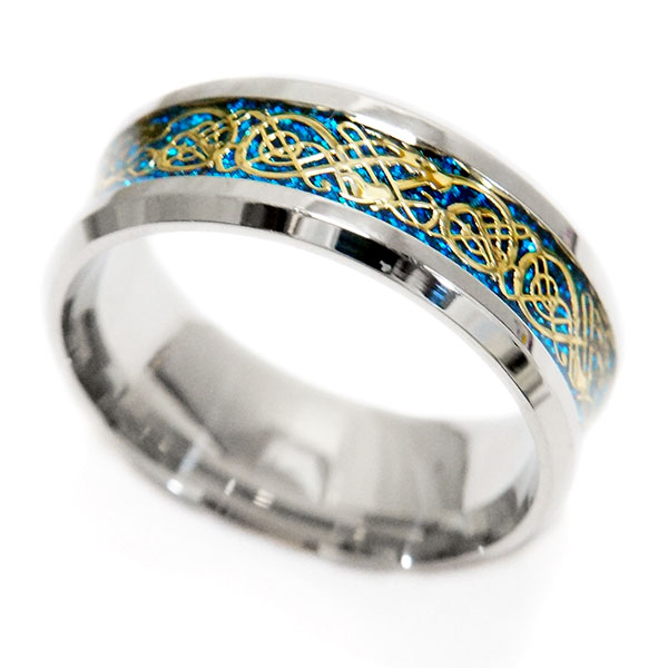 ドラゴン 龍 レース メッシュ ラウンド メタル ライトブルー ゴールド メンズ レディース ステンレス リング 指輪