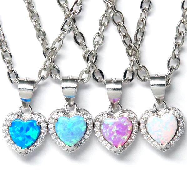 シルバー925 ペンダント ネックレス オパール ハート ジルコニア 9mm幅 【ブルー/ピンク/ホワイト/ライトブルー】