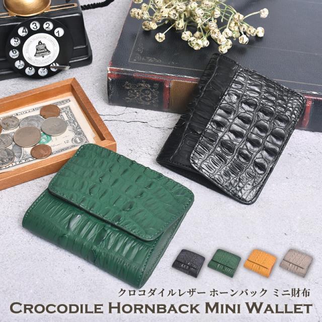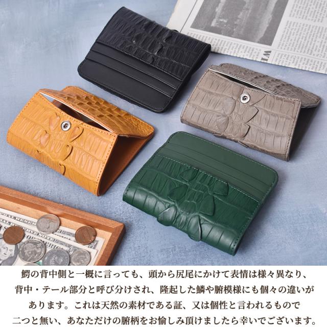 クロコダイル コインケース BOX型 レディース メンズ ホーンバック 本革 ミニ財布 ボックス型 カード収納付き 小銭入れ ワニ革 ブラック グリーン かぶせ 小さい財布 クロコ 軽量 コンパクト 小さめ 軽い 鰐革 男性 女性 人気 金運 風水 開運 ギフト プレゼント 送料無料