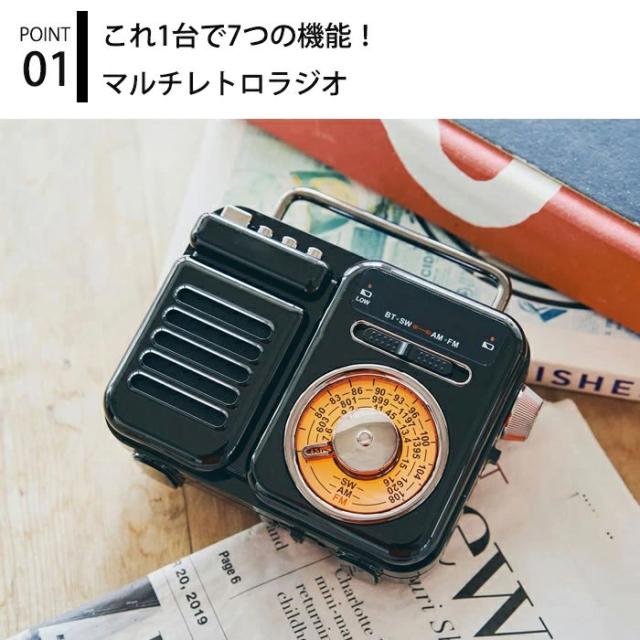 マルチレトロラジオ ラジオ 小型 ラジオ 防災 ラジオ おしゃれ ラジオ 多機能防災ラジオ 防災グッズ LEDライト アラーム スピーカー 時計 PSE認証済み