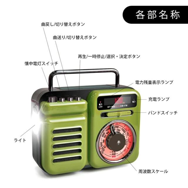 マルチレトロラジオ ラジオ 小型 ラジオ 防災 ラジオ おしゃれ ラジオ 多機能防災ラジオ 防災グッズ モバイルバッテリー Bluetooth LEDライト アラーム スピーカー 時計 音楽再生 ブラック グリーン アウトドア レトロ※メジャー採寸の為、サイズが多少異なる場合がございます。予めご了承ください。