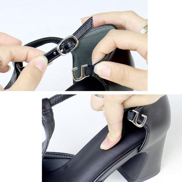 足首側のストラップは、留め具部分がフック式+ゴム仕様なので、脱ぎ履きも楽ちんです!