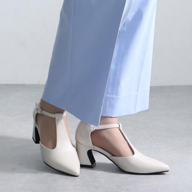 Tストラップの縦ラインとセパレートデザインが足を綺麗に見せてくれます。