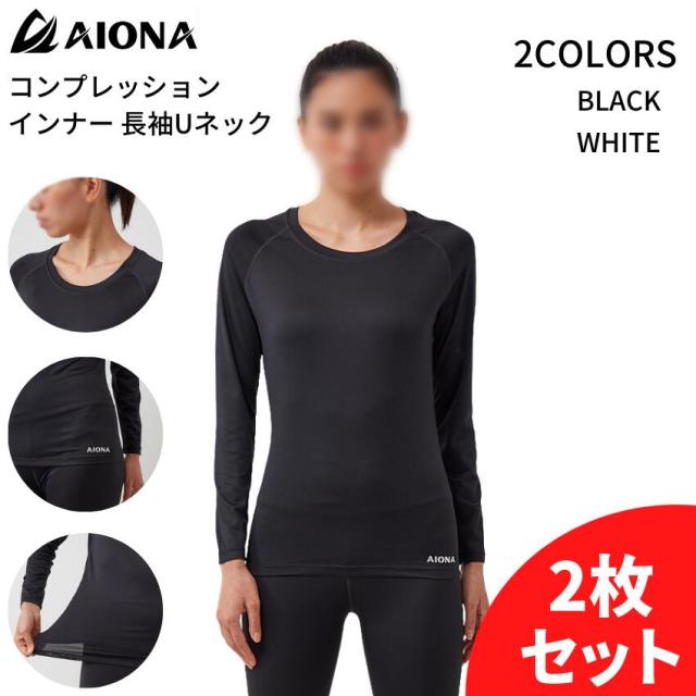 2枚セット 送料無料 AIONA レディース 長袖 Uネック コンプレッション インナー 2色 吸水速乾 抗菌防臭 コンプレッションウェア アンダーシャツ インナーウェア オールシーズン スポーツ ゴルフ ジム フィットネス ヨガ ギフト ネコポス ポイント消化