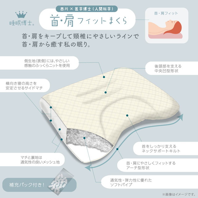 自分の寝方に合わせて選ぶ「睡眠博士」シリーズの首・肩フィット枕。◆仰向け寝が多い方におすすめの「首肩フィット」シリーズ!