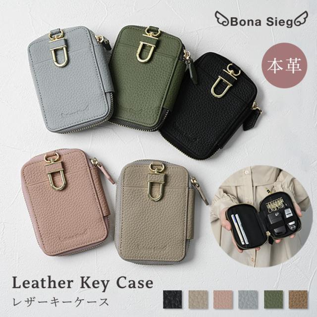 【Bona Sieg】 キーケース レディース おしゃれ ブランド シンプル スマートキー 2個収納 本革 スマートキーケース 2個 シボ加工 カードケース かわいい くすみカラー 高級 メンズ 車 鍵 6連 通勤 通学 トヨタ 日産 ホンダ プリウス スズキ ギフト プレゼント 送料無料