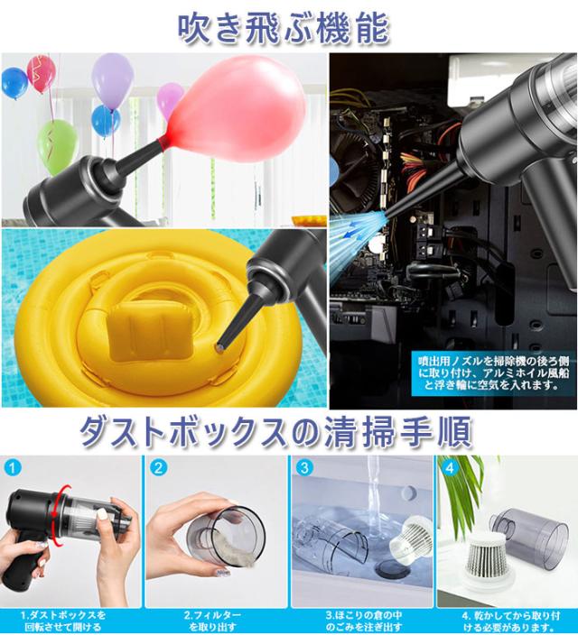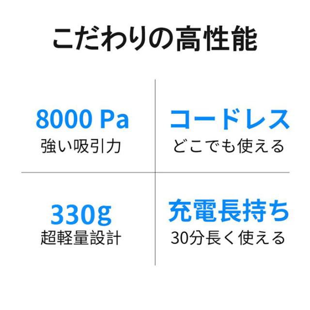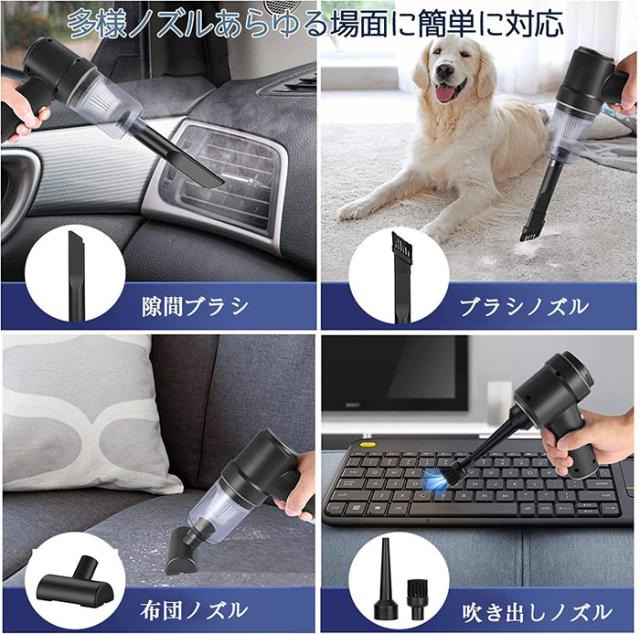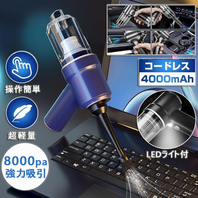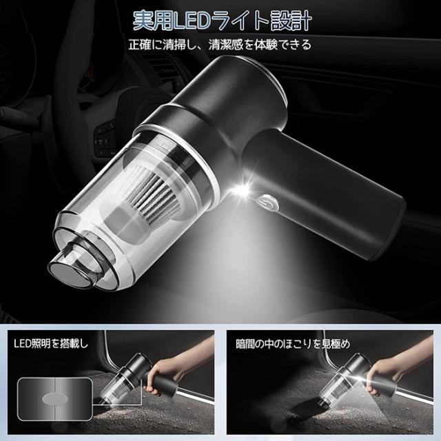 ハンディクリーナー ミニ掃除機 車用掃除機 掃除機 コードレス 車用カークリーナー 小型クリーナー USB充電 8000PA 強力吸引力 LEDライト付き 電動エアーポンプ機能付き 車載ミニポータブル 超軽量 車内清掃 家庭用