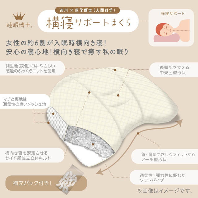 自分の寝方に合わせて選ぶ「睡眠博士」シリーズの横寝サポート枕。◆横向き寝が多い方におすすめの「横寝サポート」シリーズ!