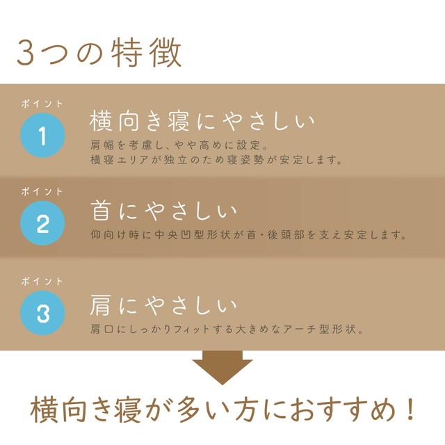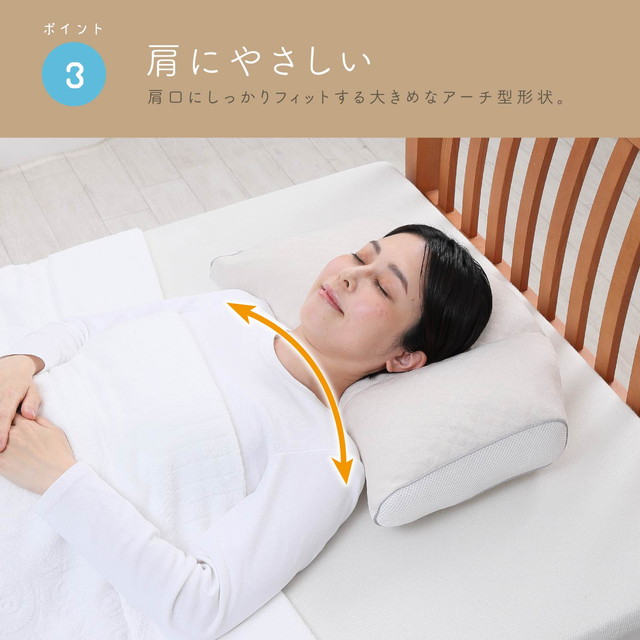 ◆肩口にフィットしやすいアーチ型形状で、横向き寝の際の首の隙間を埋めます。