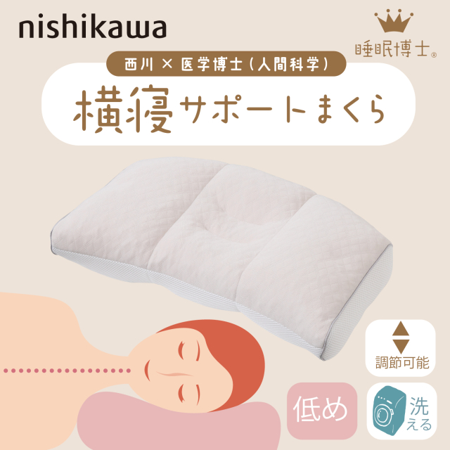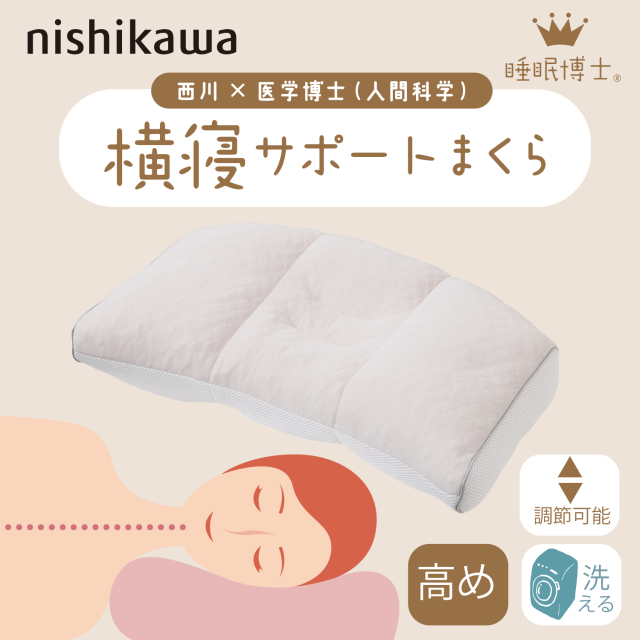 西川 枕 睡眠博士 横寝サポート枕 医学博士と共同開発 高さ調節可能 E3502 EH93009548 56×38×マチ7cm 高め 低め