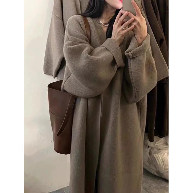 カーディガン ニット ロングカーディガン ロング丈 ニットカーデ ゆったり はおり 防寒 ロングカーデ 保温 トレンチコート 秋冬