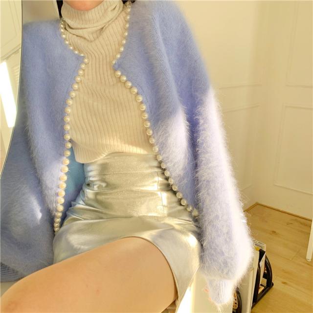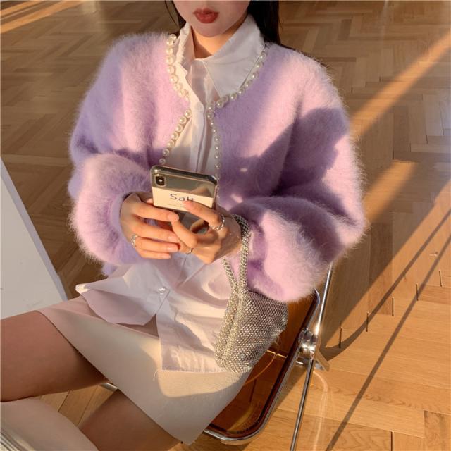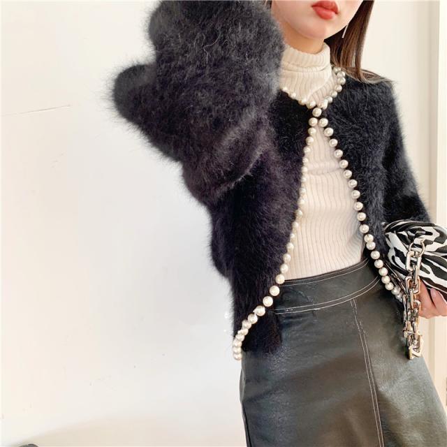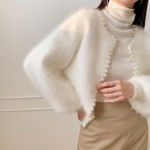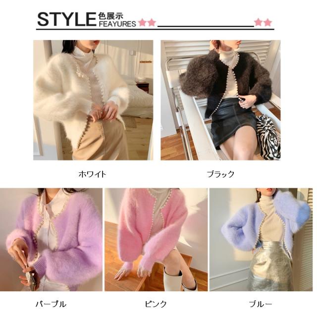 カーディガン もこもこ パール付き 秋冬 アウター ジャケット 厚手 はおり 防寒 パール 保温 ニット トレンチコート 羽織 高