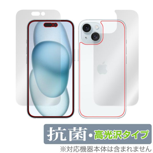 iPhone 15 表面 背面 フィルム OverLay 抗菌 Brilliant アイフォン 15 iPhone15用フィルム 表面・背面セット Hydro Ag+ 抗ウイルス 高光沢