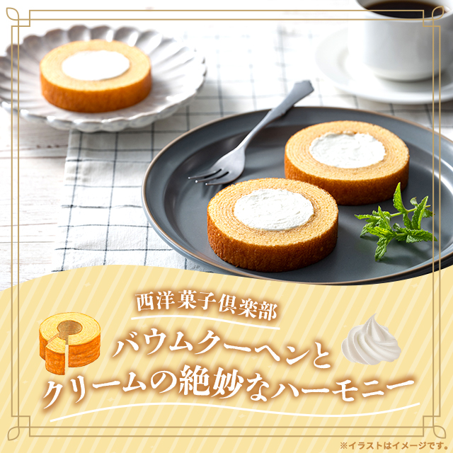 ・しっとりと焼き上げたバウムクーヘンの中に、たっぷりのクリームを詰め込んでいます。