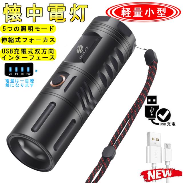 即納 懐中電灯 LED 充電式 強力 LEDライト ハンディライト ズーム機能 フラッシュライト 充電式 強力 多モード 小型 軍用 作業灯 充電池付き 停電 防水 防災対策