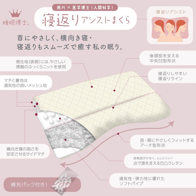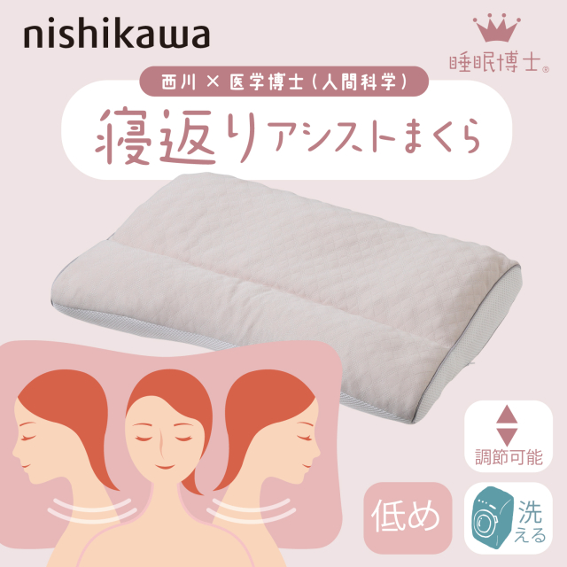 自分の寝方に合わせて選ぶ「睡眠博士」シリーズの寝返りアシスト枕。◆寝返りが多く、寝返りのたびに目が覚めてしまう方におすすめの「寝返りアシスト」シリーズ!