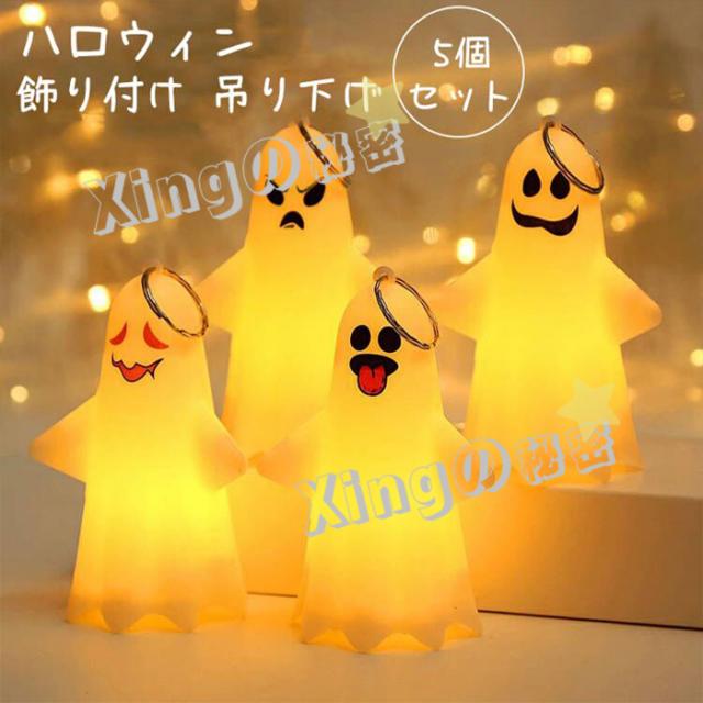 ハロウィン 飾り5個セット 光るおもちゃ 幽霊 飾り おばけ LED 飾り付け 吊り下げ 装飾 インテリア お化け屋敷 小道具 電飾 室内イルミネーション 飾り付け PSE認証済み