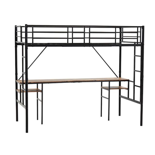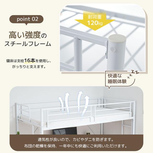 【ベッド下のデスク】ベッド下にはデスクを設計し、スペースを充分に使える。デスクの表面は広々としており、余裕な作業や学習スペースを提供できます。デスクの下に支柱/物置の棚を設置され、耐荷重は60?、安全にお使いいただけます。
