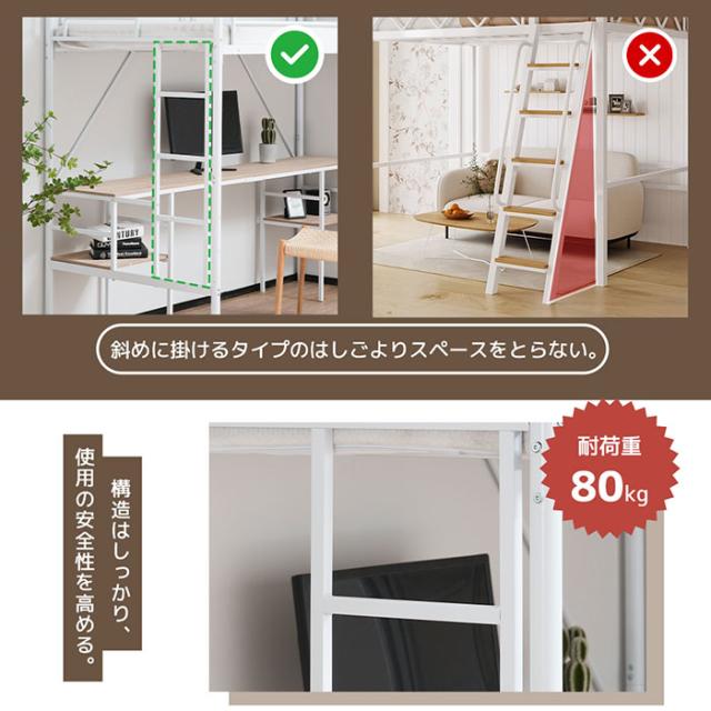 「クーポン配布中」ロフトベッド パイプベッド 耐震ベッド シングルベッド 二段ベッド デスク付き ラック棚付き ハシゴ階段 子供部屋 大人ベッド システムベット 金属 ベッドフレーム おしゃれ 北欧風 一人暮らし