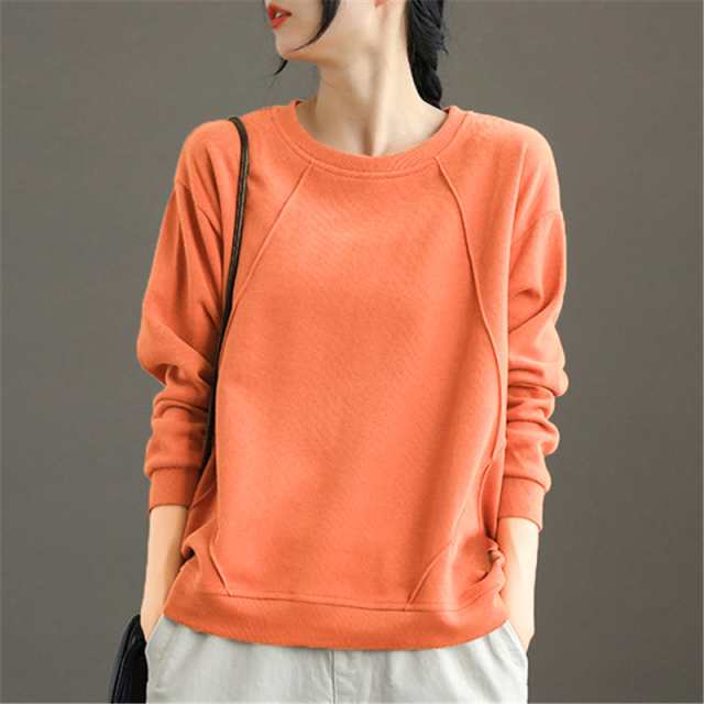 トレーナー レディース スウェット トップス 綿 プルオーバー ゆったり インナー クルーネック 無地 長袖 秋冬 着痩せ 通勤