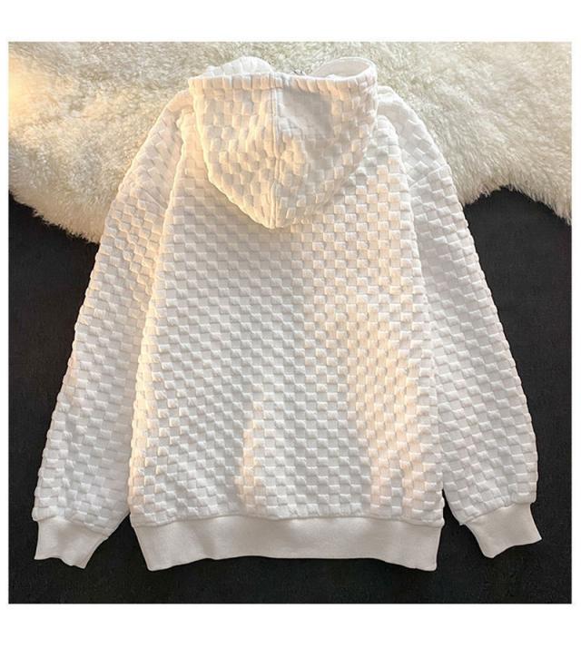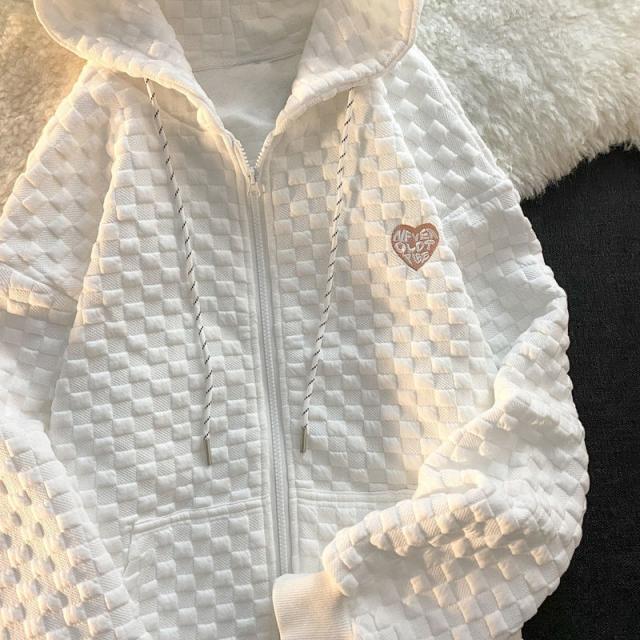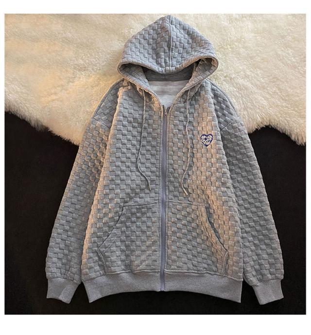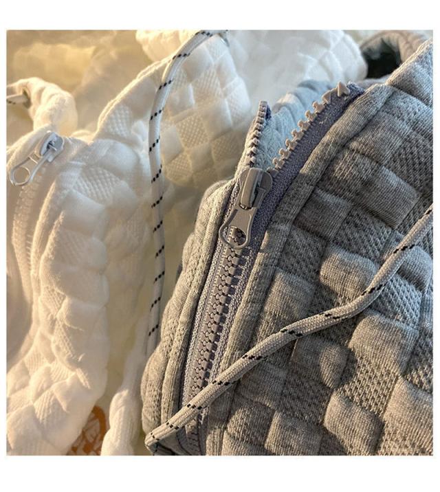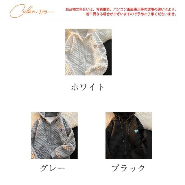パーカー レディース トップス アウター チェック柄 フード ワッフル カジュアル ゆったり ジップアップ 体型カバー 春秋 運動