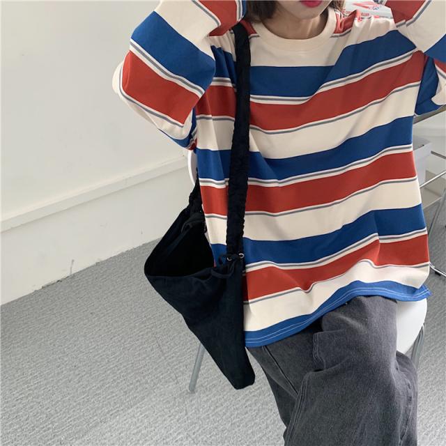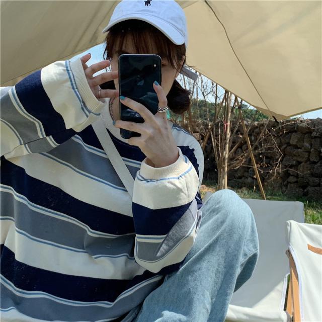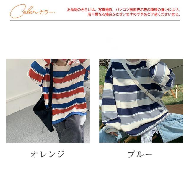 トレーナー レディース スウェット プルオーバー ストライプ クルーネック トップス ゆったり Tシャツ 長袖 カジュアル 春秋