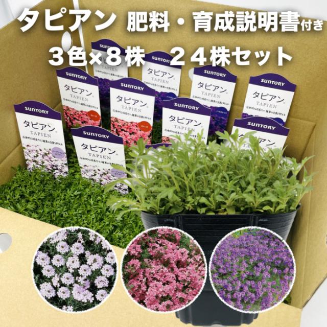 【レビュー特典あり】 タピアン 3色×各8株 合計24株 9cmポット苗 肥料付き 3号 バーベナ属 サントリーフラワーズ グランドカバー 雑草対策