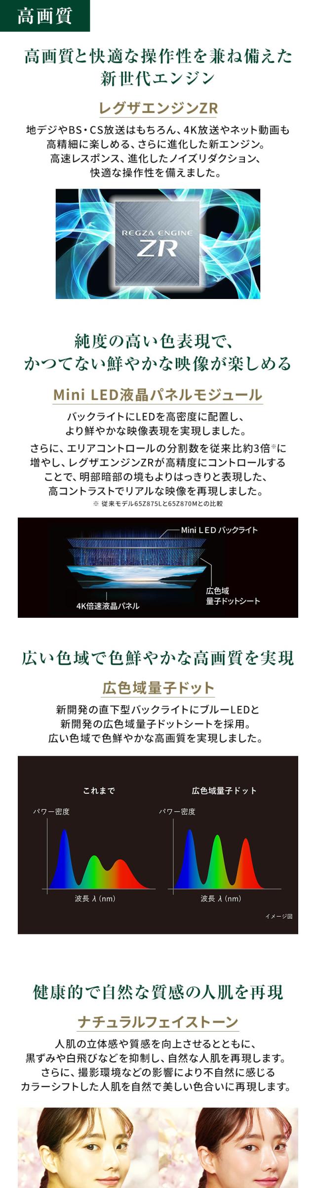 * サウンドシステム/イコライザー:重低音立体音響システムZ / レグザサウンドプロセスVIR