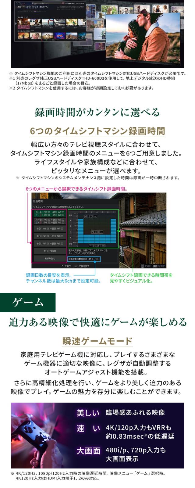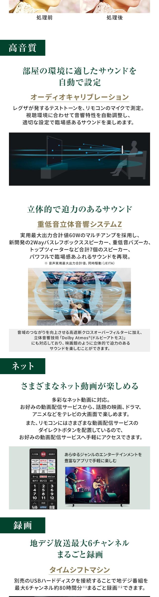 * サウンドシステム/イコライザー:重低音立体音響システムZ / レグザサウンドプロセスVIR