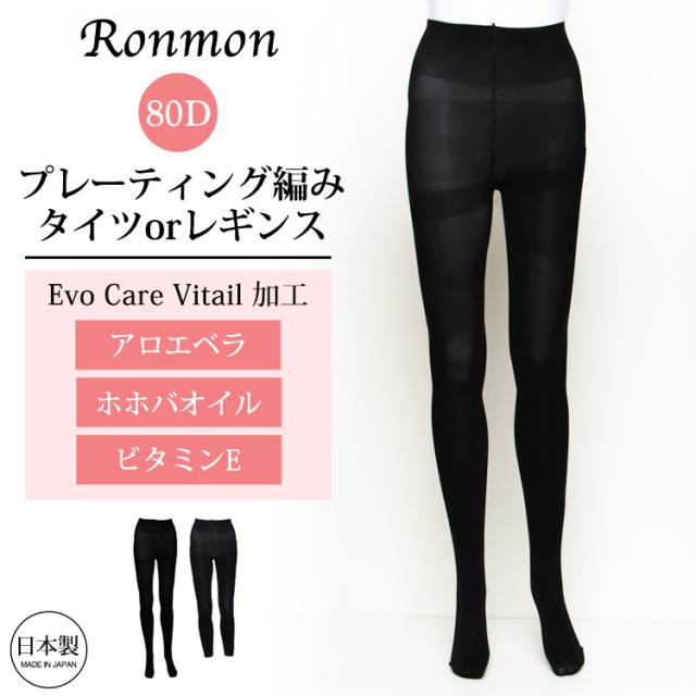 日本製 プレーンティング編み レディース タイツ レギンス EvoCarVitail加工 アロエベラ ホホバオイル ビタミンE レディース 80デニール 肌に優しい 敏感肌 単品 吸湿 抗菌 防臭 黒 暖かい あったか 仕事 OL カジュアル おしゃれ 大きいサイズ 送料無料 rst-5 100anv