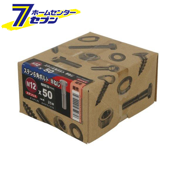「八幡ねじ 6角ボルト 半ねじ ステンレス M12X50 25本入 」は株式会社ホームセンターセブンが販売しております。