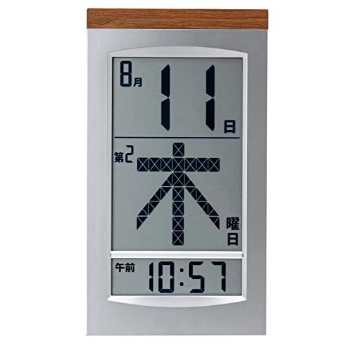 ADESSOアデッソ 日めくりカレンダー 電波時計 デジタル メガ曜日日めくり電波時計 置き掛け兼用 シルバー HM-704