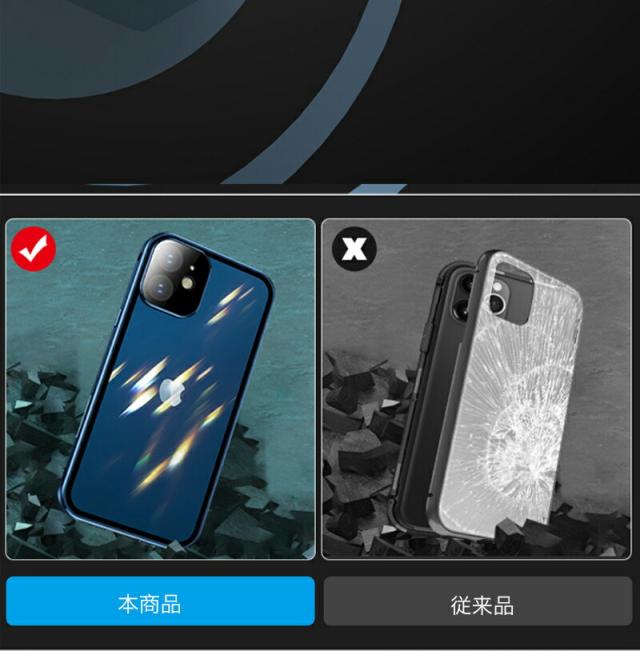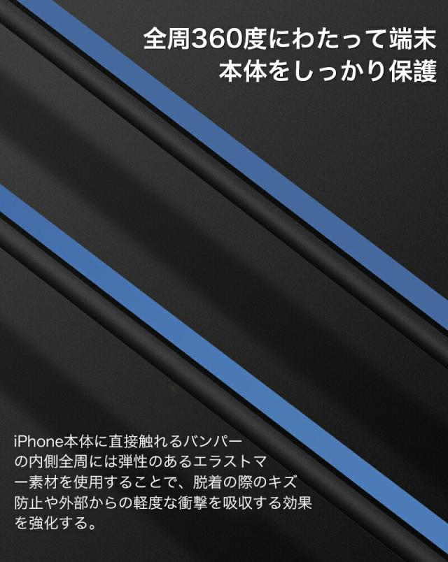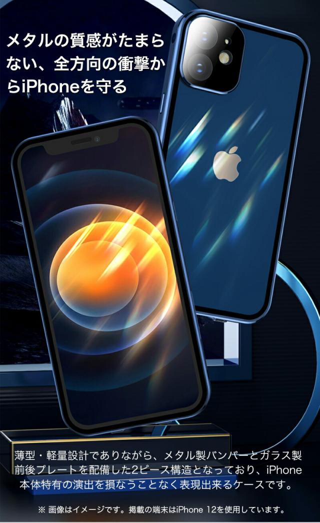 薄型・軽量設計でありながら、メタル製バンパーとガラス製前後プレートを配備した2ピース構造となっており、iPhone本体特有の演出を損なうことなく表現出来るケースです。