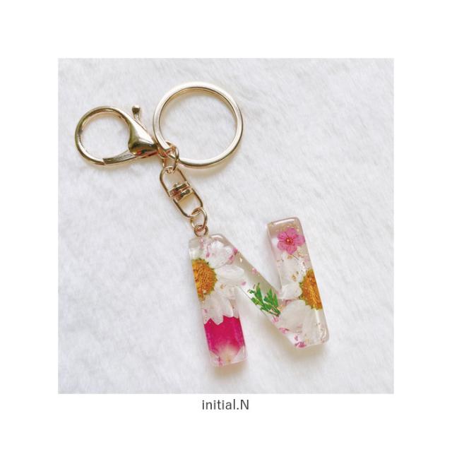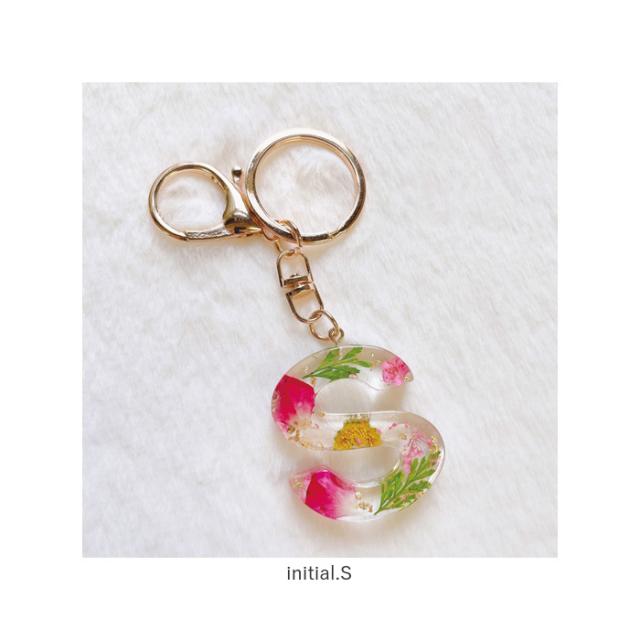イニシャルチャーム キーリング 通販 イニシャル チャーム キーホルダー アルファベット ドライフラワー 花 クリアリウム インアリウム かわいい おしゃれ 贈り物 ギフト レディース 女の子 キッズ
