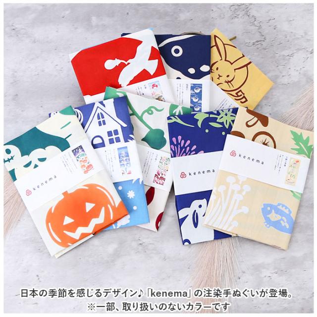kenema ケネマ 手ぬぐい 通販 注染手ぬぐい てぬぐい 手拭い 絵手拭い 絵てぬぐい 約 35×90cm 綿 100パーセント タペストリー はちまき 柄 日本製 伝統的 おしゃれ 秋 冬 季節 和風 和小物 和雑貨 手拭き インテリア かわいい 可愛い