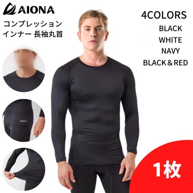 【在庫処分】AIONA アイオナ コンプレッション インナー メンズ 長袖 丸首 接触冷感 吸汗速乾 UVカット 紫外線対策 抗菌防臭 ストレッチ 通気性 スポーツ トレーニング ジム ランニング ゴルフ 野球 オールシーズン 売り尽くし セール anam-100